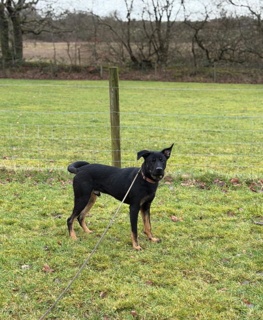Rags came into rescue from a council pound as an unclaimed stray and is approximately six months old. He is a German Shepherd cross with a super temperament — happy, playful and very people-focused. Rags is excellent with other dogs and has met cats, where he has been respectful. He is a bright young lad who is eager to learn and very much wants to please. He will need an active home that can provide him with structure, continued training and plenty of positive experiences to help him flourish. As he can still jump up in excitement when meeting new people, a home with children aged 8 years and over would be preferred.