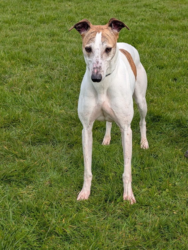 Timmy is a beautiful, laid-back 8-year-old gentle Lurcher with the most soulful eyes and the calmest nature. He is wonderfully laid back and would adore a home where he can stretch out on his very own sofa, preferably with a soft duvet to snuggle into. A true sighthound lover’s dream, Timmy enjoys the quieter side of life — cosy naps, peaceful strolls and simply being close to his people.